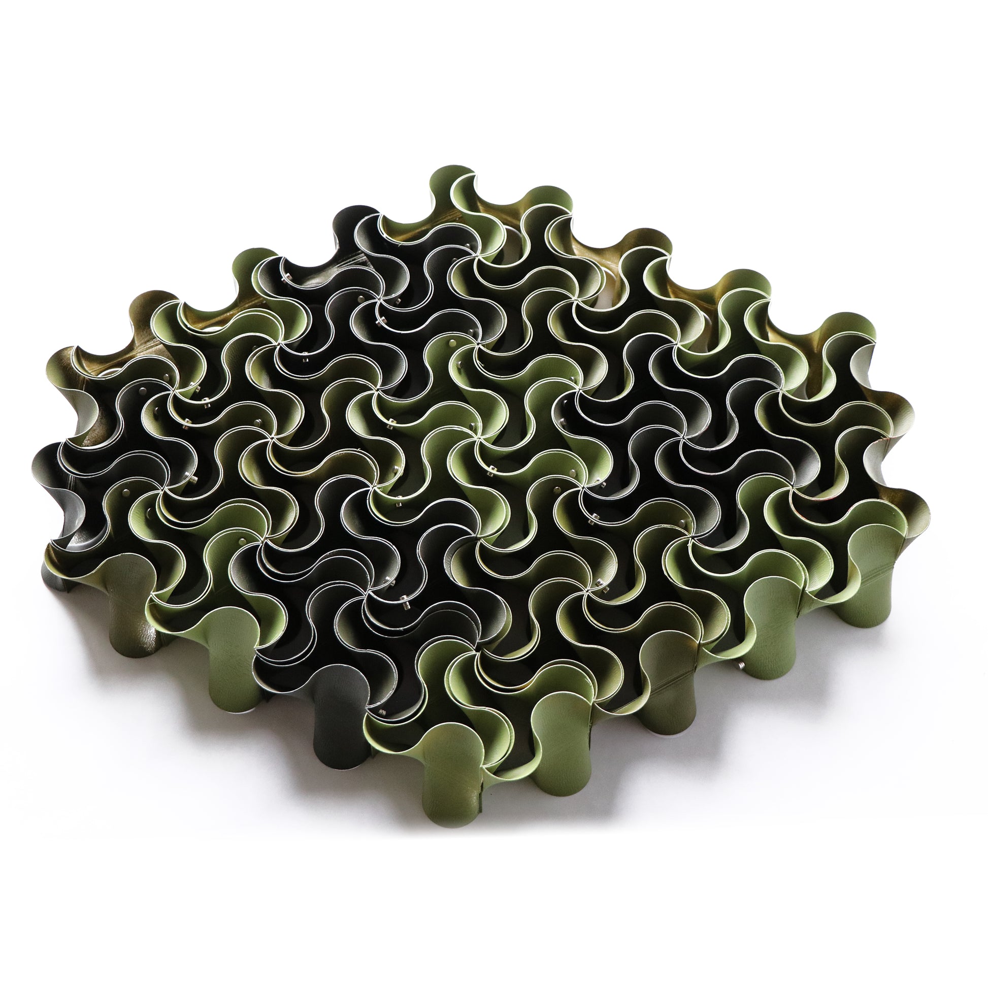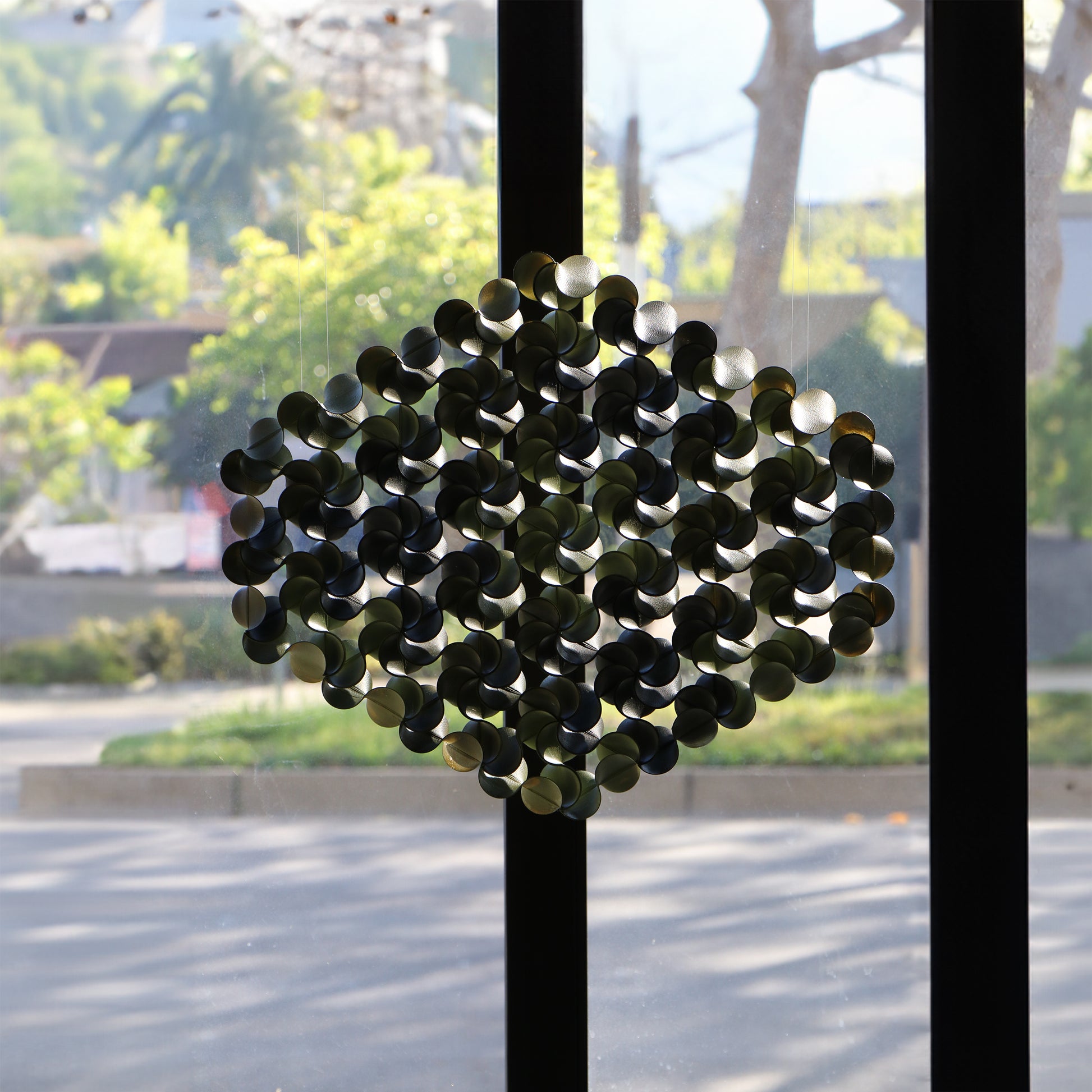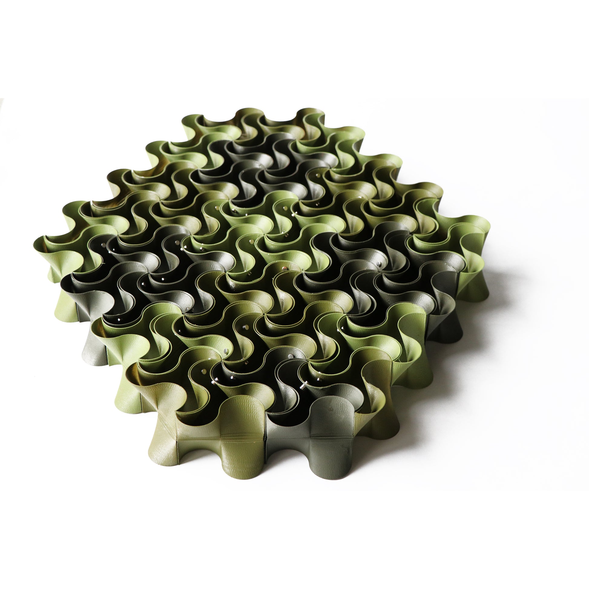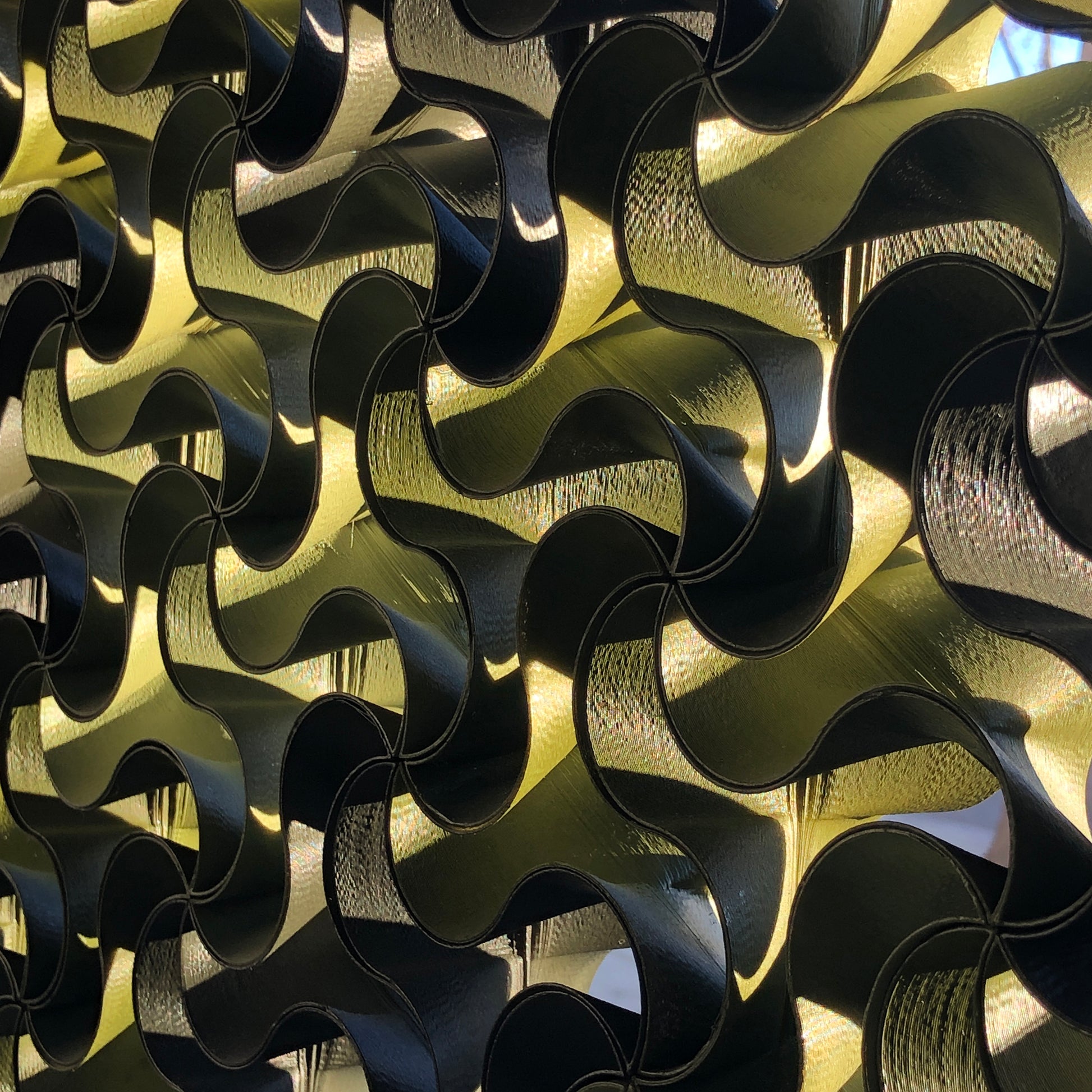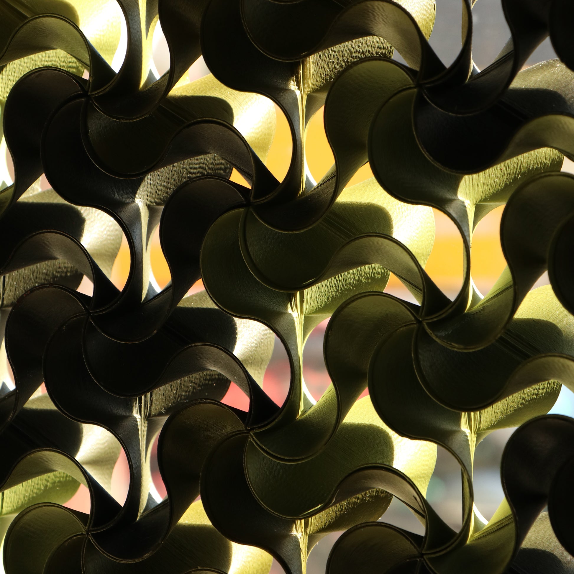 HarmonyTrio is an art installation comprised of 64 3D-printed and hand-painted pieces, skillfully assembled into a captivating unique shape. Versatile and dynamic, it can be hung on a wall or placed in front of windows, offering a unique view from every angle.